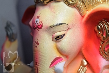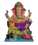 This idol shows Lord Ganesha sitting on a Sunflower. This sitting posture is is known as the Lalitasana. It shows Ganpati sitting on a flower with his left leg folded and the right leg resting on the ground. This posture denotes that he is meditating. The leg that rests on the ground shows his worldly concerns. This idol brings peace, meditation to the home. The color of beautiful flowers brings freshness and happiness.