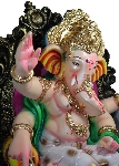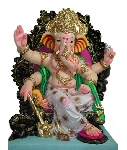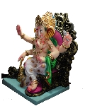 "Our auspicious Ganesha is seated in Asan Mandi and adorned in mix of purple and blue attire. The four arms remind us of his omnipotent presence. Ganesh chaturthi is coming soon. Begin ganesh chaturthi celebration with the name bappamorya.
